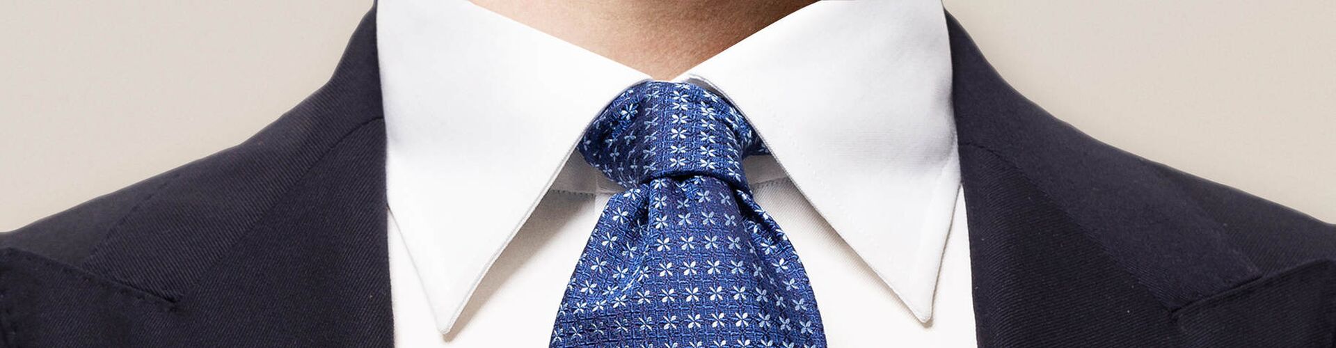 Navy Flower Patterned Silk & Linen Tie